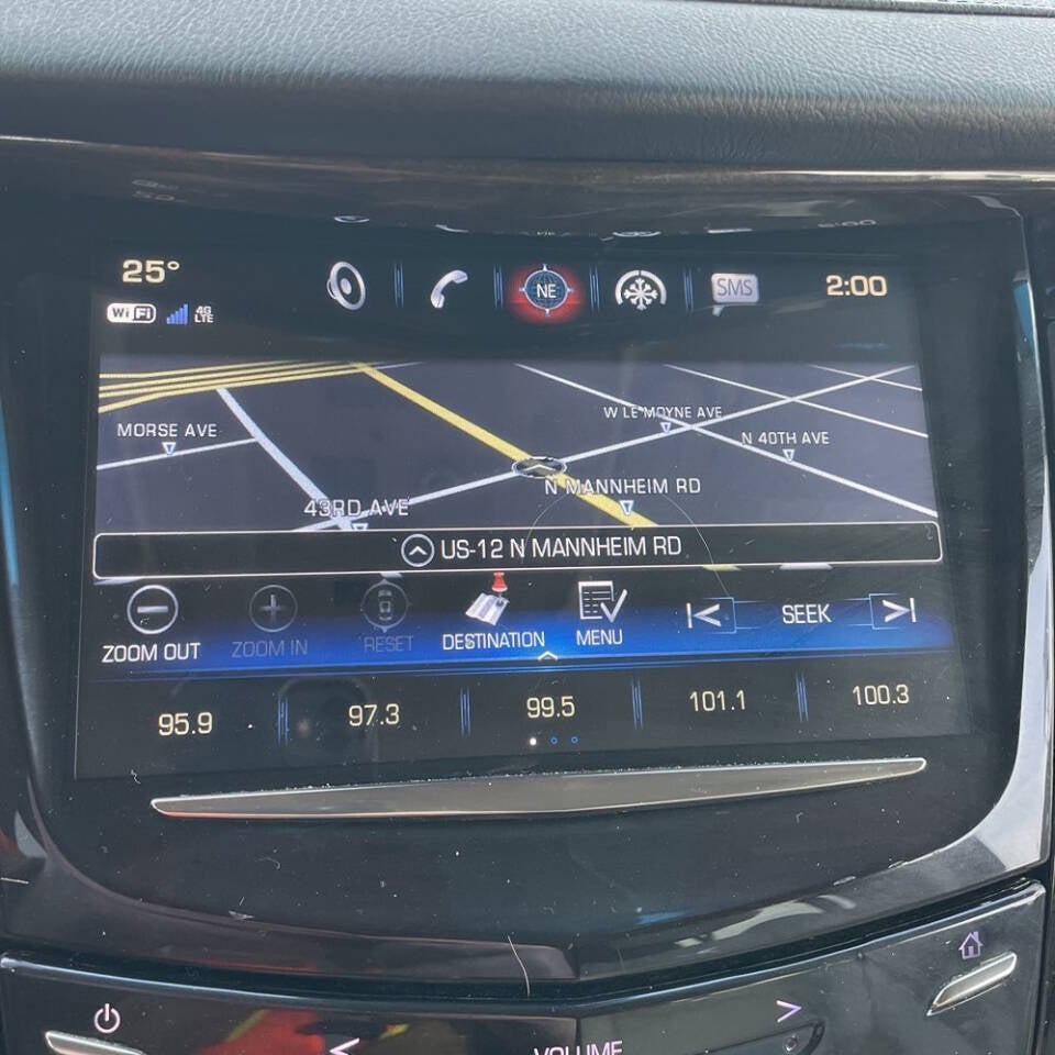 - Cadillac user experience with embedded navigation AM/FM stereo with 8" diagonal color information display featuring touch response, haptic feedback, gesture recognition, Natural Voice Recognition, Phone Integration for Apple CarPlay and Android Auto capability for compatible phone, Collection and Teen Driver. Five USB ports, including one in the articulating storage door/bin and auxiliary audio port