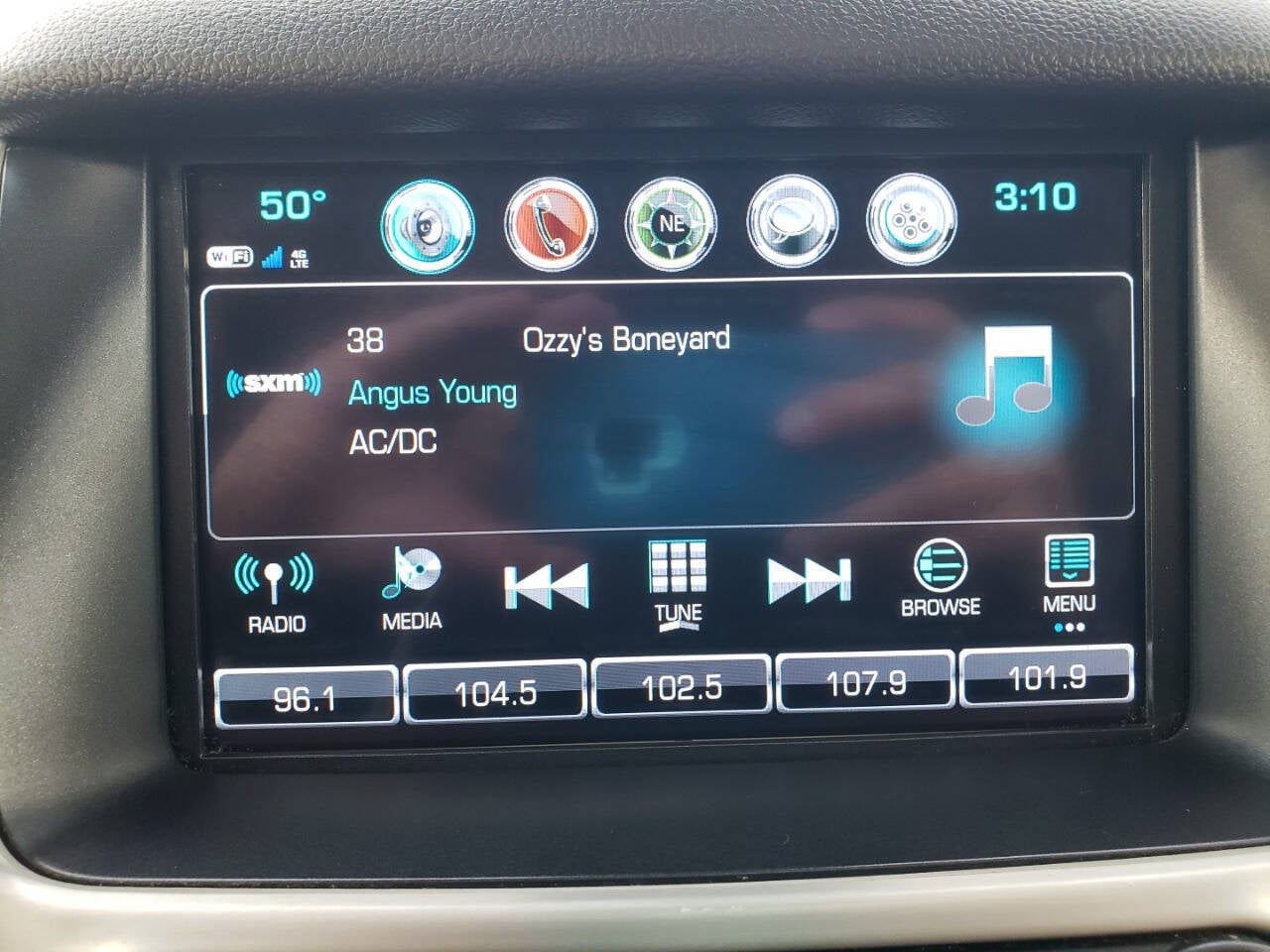 - Audio system, 8" diagonal Color Touch screen with GMC Infotainment System AM/FM/SiriusXM with USB ports and auxiliary jack with seek-and-scan and digital clock, includes Bluetooth® streaming audio for music and select phones; voice-activated technology for radio and phone; and Shop. Featuring Apple CarPlay and Android Auto capability for compatible phone; 5 USB ports and 1 auxiliary jack