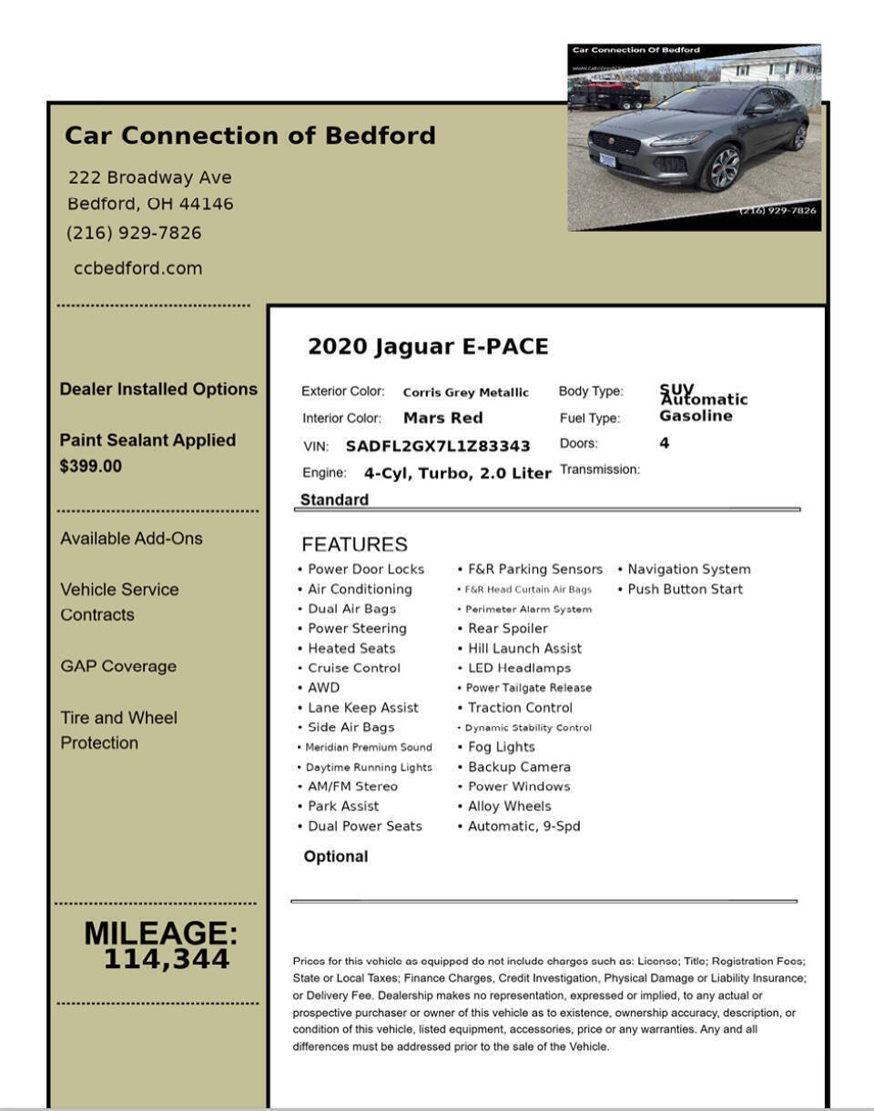 - Vehicle Name: Jaguar E-PACE